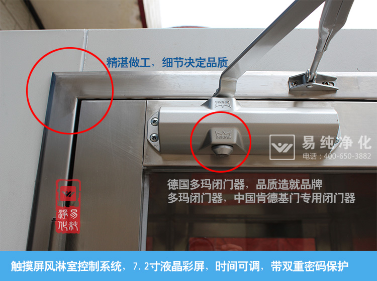 3、電子聯(lián)鎖:電子聯(lián)鎖是風淋室當中最重要的原配件之一,缺少聯(lián)鎖的風淋室嚴格意義上不能稱之為風淋室,因為其不能強制吹淋,不能起到緩沖作用。市場上部分廠家采用自制陰極鎖,這種鎖未經(jīng)過老化實驗,且加工粗糙,精密度不高。由于風淋室電子聯(lián)鎖是頻繁使用的部件,所以質(zhì)量不可靠的電子鎖容易造成卡鎖,雙門無法打開而將人員鎖在里面了。