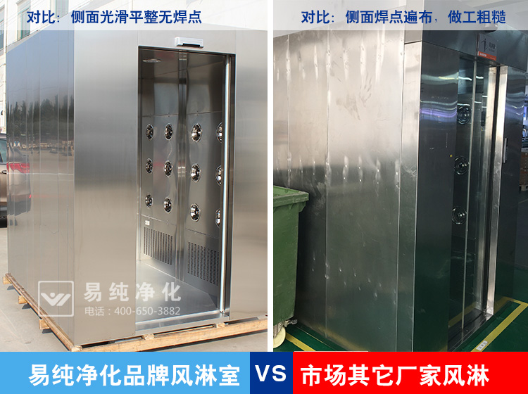 1、風淋室的材質(zhì):首先從材質(zhì)上分類主有彩鋼板,鋼板型風淋室和不銹鋼風淋室三種主流材質(zhì)。其中彩鋼板因質(zhì)量較差目前已經(jīng)基本不再使用,鋼板風淋室主要看材質(zhì)的厚度和噴漆的過程,市場上有的采用0.8-1.0的材質(zhì)厚度,這種厚度偏薄,容易變形。一般建議在1.2MM或以上的鋼板材質(zhì)較佳。在噴塑上面,很多廠家都是自噴或者是到小廠家噴塑。這其中有一個最重要的環(huán)節(jié)就是需要酸洗磷化,很多廠家為了節(jié)約成本或者噴塑廠家實力不行,未經(jīng)過酸洗磷化,如果缺少這個步驟,油漆本身很難與設(shè)備粘合,時間一長,很容易整場的脫漆。