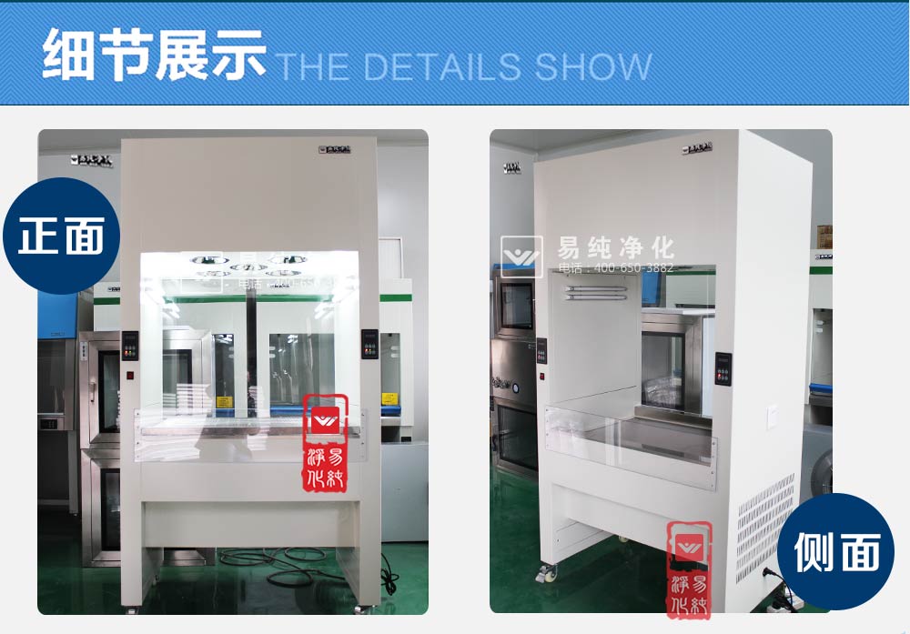 上部吹風(fēng):上部有風(fēng)機(jī)和初高效過濾器,風(fēng)機(jī)經(jīng)過加壓將過濾后的潔凈空氣送入到工作區(qū)內(nèi),使工作區(qū)的環(huán)境達(dá)到百級;